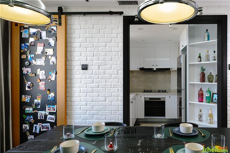 通往陽臺(tái)的門改為谷倉(cāng)門,門扇中間設(shè)計(jì)了磁吸黑板貼,上面貼滿了周導(dǎo)走遍世界各地留下的身影,點(diǎn)點(diǎn)滴滴盡是回憶,人在旅途永不止步。