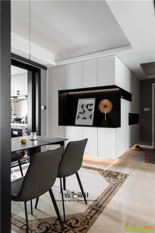 4:餐廳增加鏤空隔斷,既延長餐廳的幅面,也避免了過道視覺的不通透感。