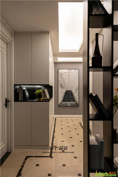 1:因過道采光較弱,增加鞋柜底角燈帶,并暗藏掃地機(jī)器人