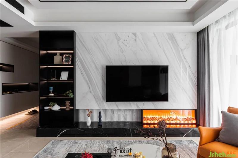 3:將電視背景墻做成大理石,擴(kuò)大客廳空間感
