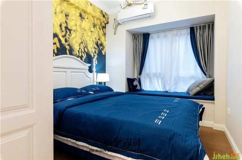 深藍(lán)色的沉穩(wěn)大氣,有著令人安心的力量。金色落葉點綴著神秘的深藍(lán)星空,讓空間生動起來。
