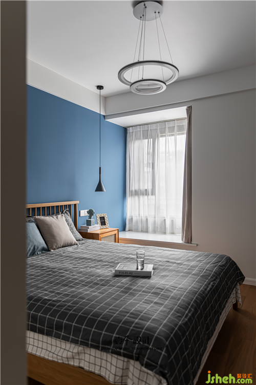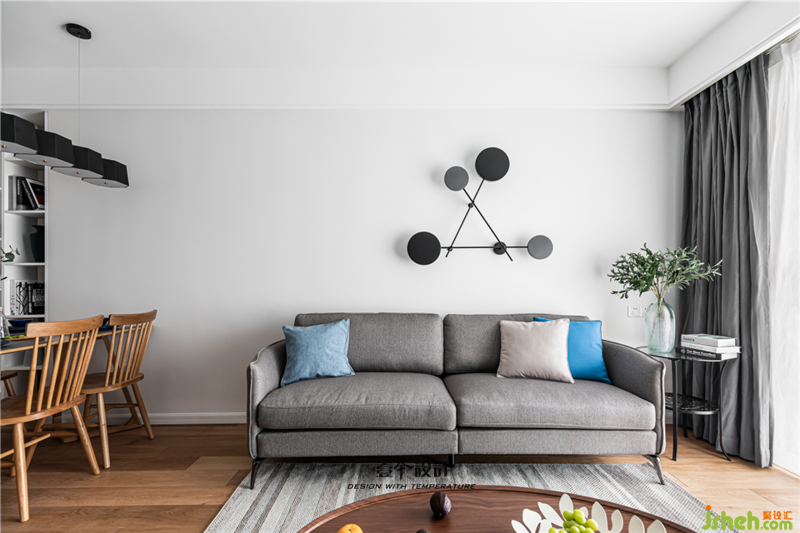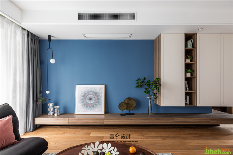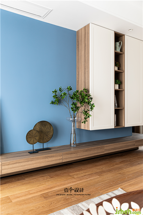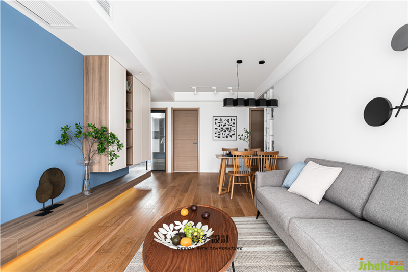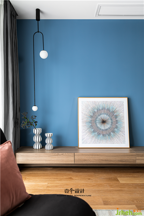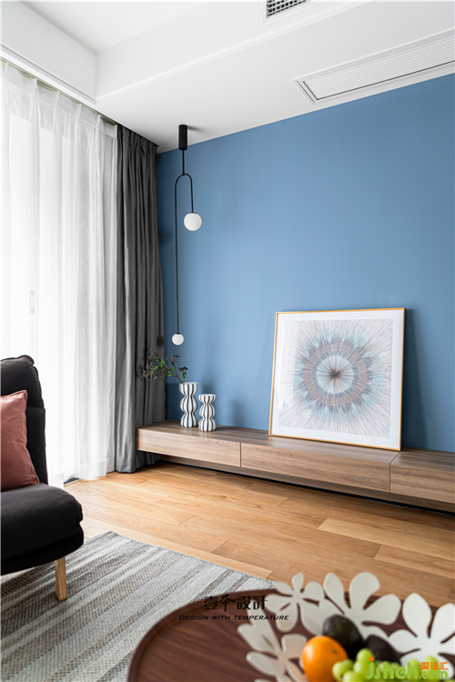 設(shè)計(jì)手法上,刪繁就簡(jiǎn),客廳采用無(wú)主燈設(shè)計(jì),通過(guò)吊燈、壁燈、暗藏?zé)魩н@些輔助光源作為補(bǔ)充。既沒(méi)有過(guò)多的裝飾,也沒(méi)有過(guò)多的顏色,木色、灰色,藍(lán)色三種顏色構(gòu)成了空間給人的視覺(jué)體現(xiàn),它干凈而簡(jiǎn)練,也溫情而自然。南京室內(nèi)設(shè)計(jì)師