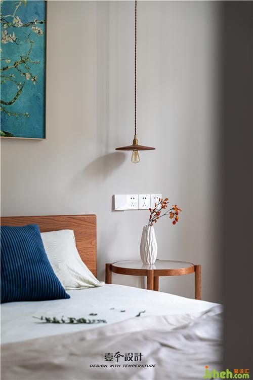 老人房沒有太多裝飾,同樣保持輕松自然的舒適氛圍,木色雙人床和床頭柜設(shè)計(jì),搭配淺暖灰色床頭背景墻,簡(jiǎn)單的掛上一副裝飾畫,溫馨感由內(nèi)而生。