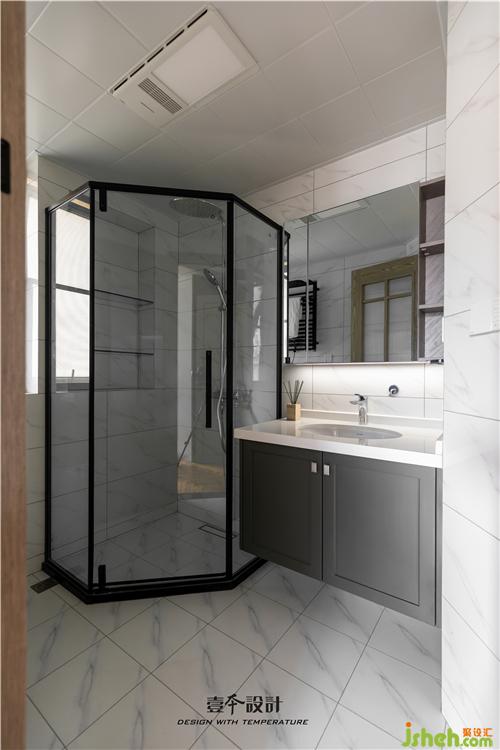 衛(wèi)生間我們延續(xù)簡(jiǎn)約風(fēng)格,整面的鏡柜,空間顯得更大,簡(jiǎn)易的干濕分離,保證衛(wèi)生間通透整潔。