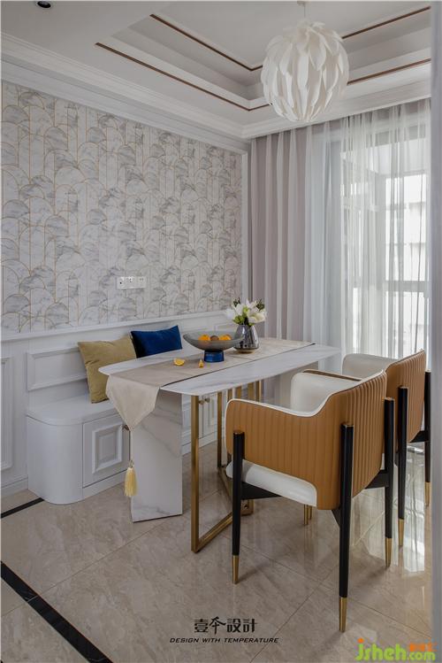卡座餐廳時尚又實用,卡座下面可以做儲藏柜,上面放上抱枕,溫馨感瞬間提升。輕奢精致的餐桌椅,室內(nèi)設(shè)計師在金屬、石材與皮藝質(zhì)感的結(jié)合搭配下,呈現(xiàn)出有儀式感的用餐氛圍。