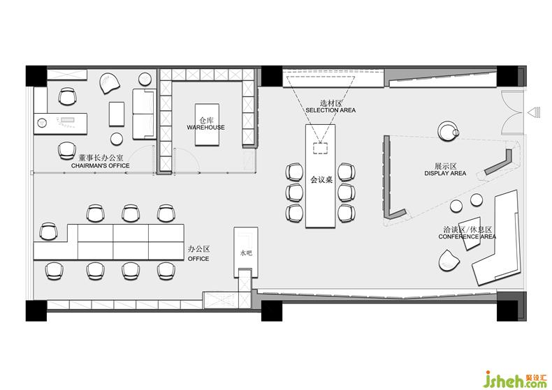 空間的大體色調(diào)最終確定為黑白。在呈現(xiàn)的姿態(tài)上,室內(nèi)設(shè)計師并不作富有視覺沖擊力的切割,不刺激眼球,作為背景畫布存在,旨在凸顯空間體驗和產(chǎn)品