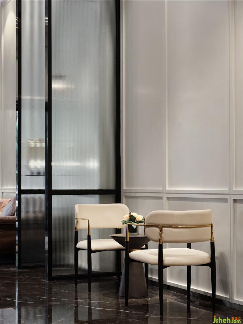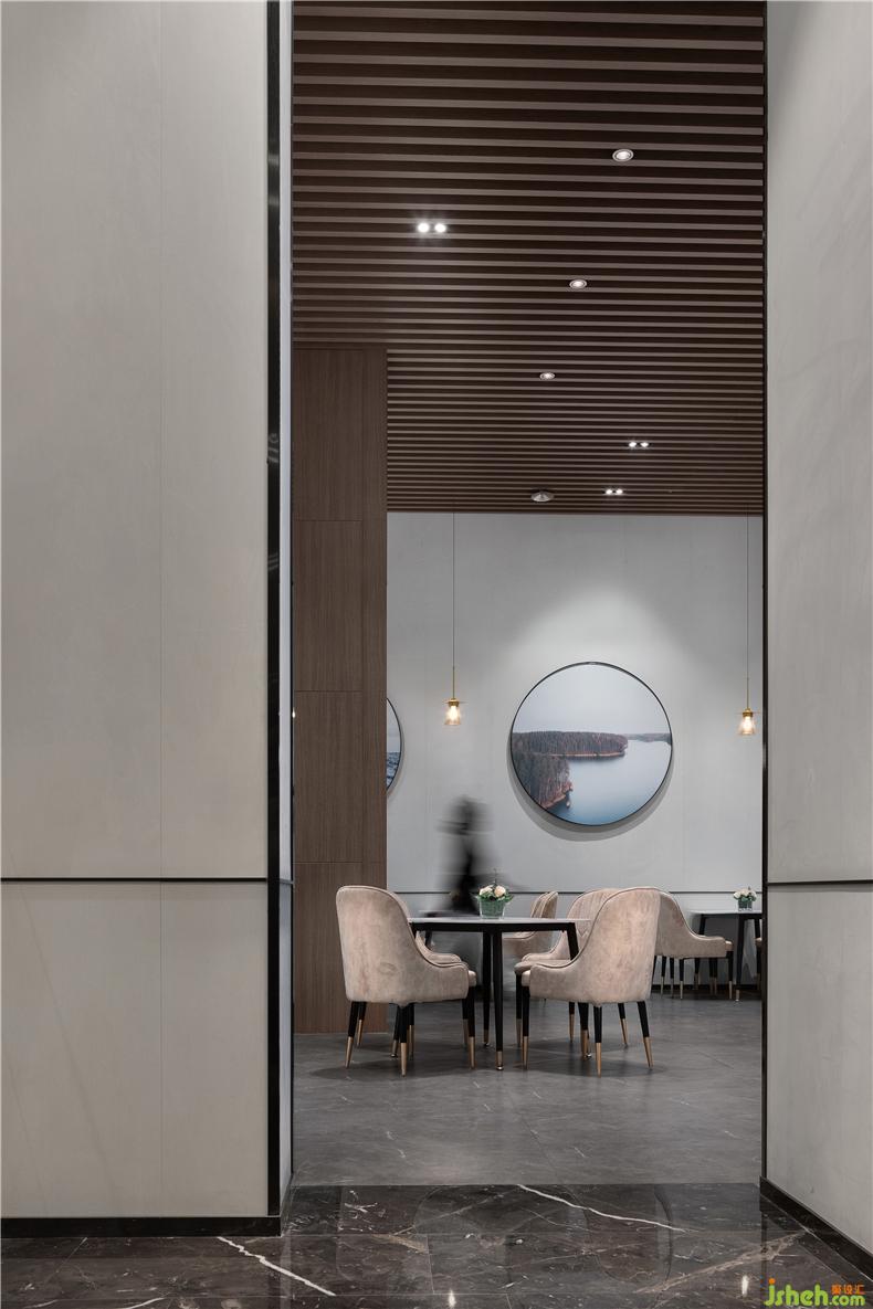 不同層次與質(zhì)感的灰、白、黑相互交融,在燈具和家具的局部,克制地點綴了金色、藍色、紫色,酒店設(shè)計現(xiàn)代奢意與自然靈動在空間中游走,沉淀出游刃有余的愜意與從容氣質(zhì)。