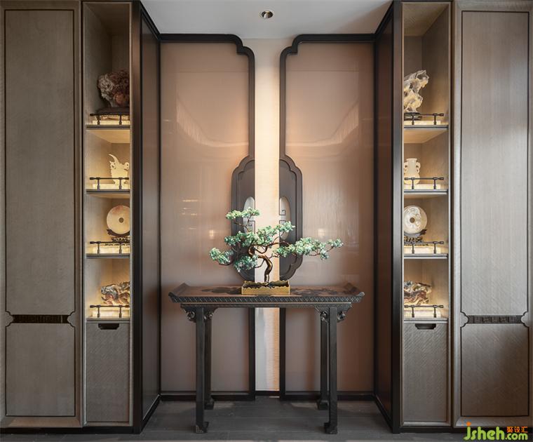 繁盛的花墻、桌椅鏡柜的設(shè)計,或方或圓的器物形態(tài),樣板房設(shè)計都用了考究的工藝進行處理,在空間中不搶戲、卻很出彩。