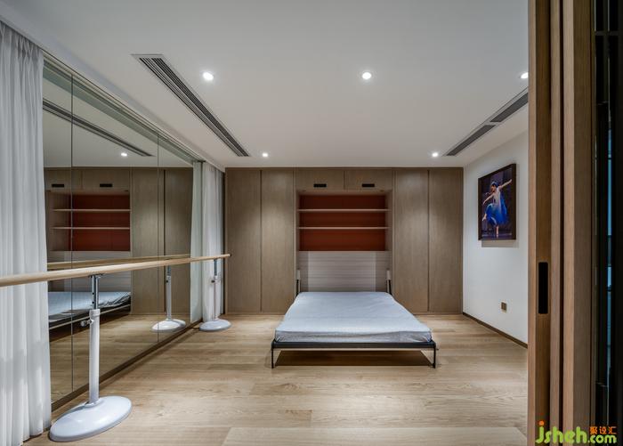 在舞蹈室內(nèi)增設(shè)“隱形床”,可作兒童休息地,也可作為備用客房。