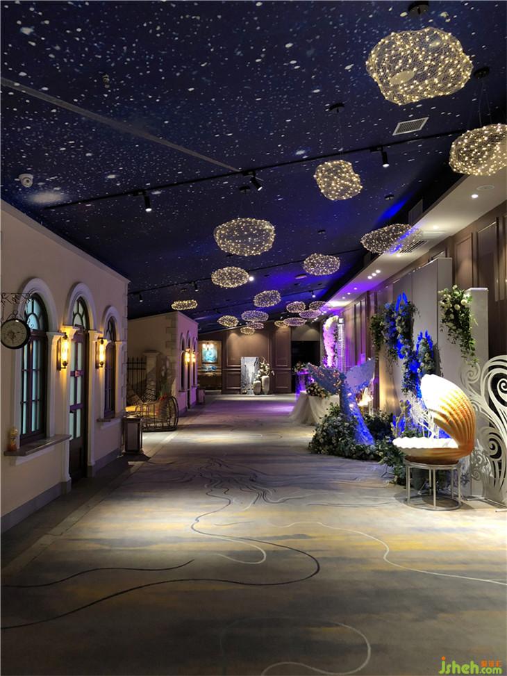 三個(gè)主題宴會(huì)廳依次排開,既有歐式教堂的輝煌,現(xiàn)代手法的提煉;也有夢(mèng)幻海洋,燈光氛圍的營(yíng)造;還有身臨其境的微光森林。