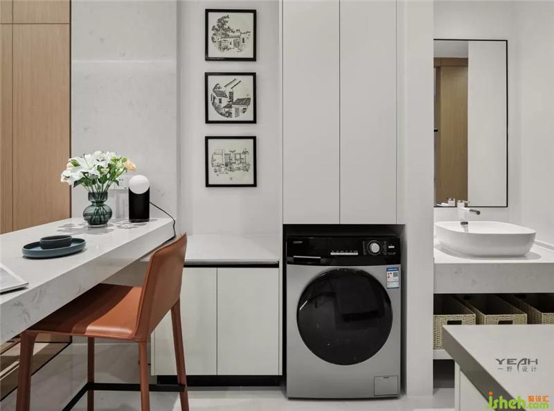 衛(wèi)生間采用了大面積的白色,干凈明亮而又不失質(zhì)感室內(nèi)設計師。
