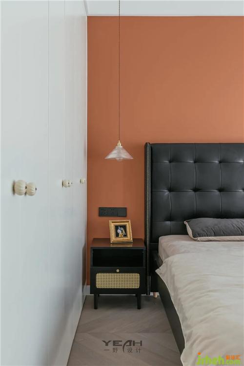 橙色的熱情與溫暖同樣在臥室里得到不同的呈現(xiàn),保證視覺的連續(xù)性??臻g拋棄了一切復(fù)雜的設(shè)計技法,蘇州室內(nèi)設(shè)計師用大面積的空白給生活留足發(fā)揮的空間,塑造平靜的休息空間。