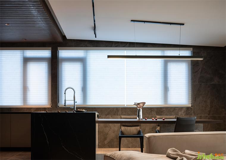 操作臺、島臺、餐桌形成一條連貫流暢的動線,一面是功能的鏈接,一面是視覺的延展,生活和美學(xué)融為一體。