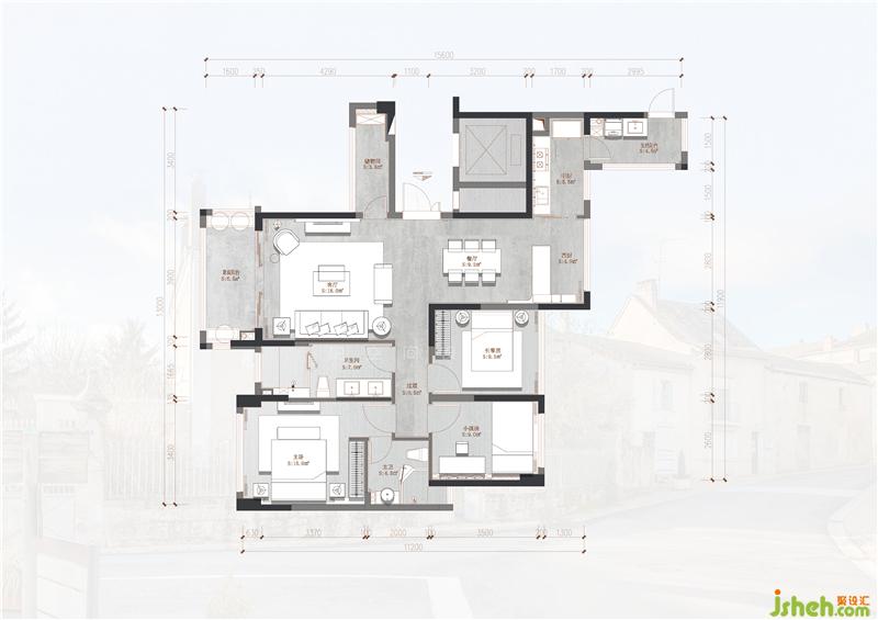 木飾面與明灰墻布的交互,如季節(jié)的更迭,