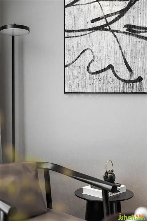 作為延續(xù),次臥繼承了主臥的溫潤與淡雅,在別致的燈飾、掛畫和那數(shù)枝白梅映襯下,卻又呈現(xiàn)出另一番獨屬的風(fēng)景。