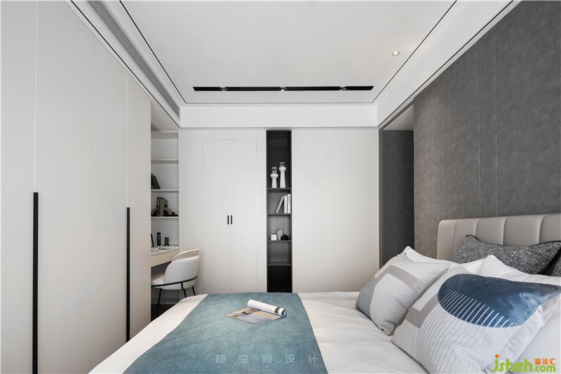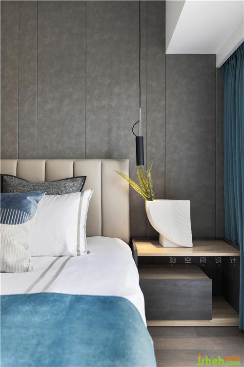同為大地色系的硬包背景,與米黃色皮質(zhì)床頭呼應(yīng)著深褐色地板,深圳室內(nèi)設(shè)計(jì)師在皎潔的天花、柜體和床品的映襯下,溫潤(rùn)安謐如清晨滋養(yǎng)萬(wàn)物的沃土;盛放的那一抹比斯開藍(lán),清麗亮眼,出落得那樣寧?kù)o平和,是一派不艷俗的明艷動(dòng)人。