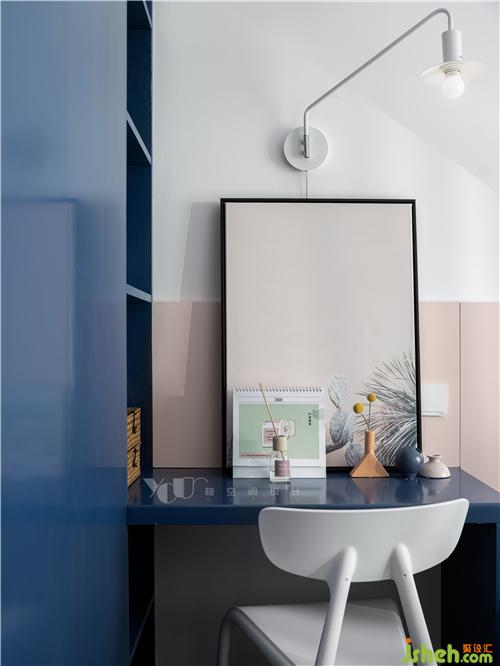 潔凈的餐桌大多時(shí)候是閱讀區(qū),夢(mèng)幻的紅藍(lán)配色與酷酷的工業(yè)風(fēng)臺(tái)燈及書撐裝置組合,挺有意思的搭配,拉近了童話和現(xiàn)實(shí)的距離,深圳室內(nèi)設(shè)計(jì)師也讓空間表現(xiàn)層次更加豐富了一層。