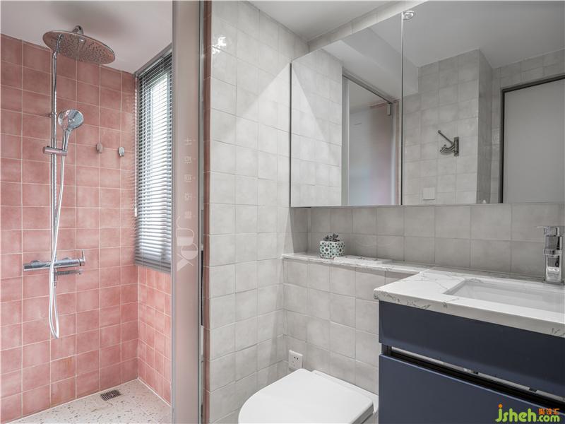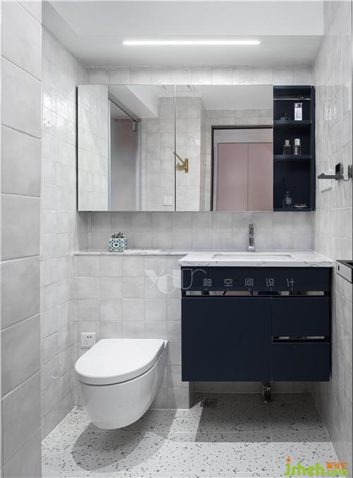 換了一身白衣,面包磚和水磨石這對(duì)活潑可愛的組合,又將原本不大的衛(wèi)生間空間變得靈動(dòng)有趣起來(lái),深藍(lán)的柜色與全屋空間的配色進(jìn)行了一個(gè)呼應(yīng),也穩(wěn)住了場(chǎng)子、讓整白的空間不至于太過(guò)輕飄。