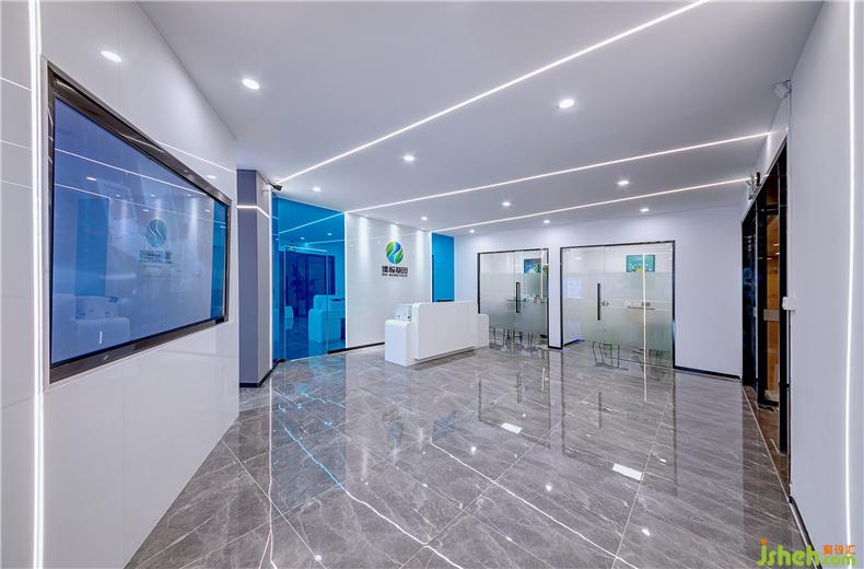 前廳的設(shè)計(jì)以簡(jiǎn)潔白色石材與天藍(lán)色鏡面形成對(duì)比,辦公室設(shè)計(jì)采用非對(duì)稱性的勻光線條燈帶的設(shè)計(jì)連接天花與墻面體現(xiàn)出科技公司的創(chuàng)新,靈動(dòng)。開放辦公區(qū)墻面設(shè)計(jì)以線帶面,提取科技藍(lán)、森林綠的企業(yè)色與淺灰色形成折線導(dǎo)向關(guān)系,搭配白色基調(diào)的家具,與條紋編織地毯形成強(qiáng)烈的對(duì)比,在辦公空間中體現(xiàn)了儒翰基因公司的人文精神,辦公室設(shè)計(jì)讓員工可以在工作中提高工作效率,在辦公區(qū)設(shè)置了半透明的休息討論區(qū),既滿足了休閑的需求,辦公室設(shè)計(jì)同時(shí)也加強(qiáng)了同事之間的溝通。