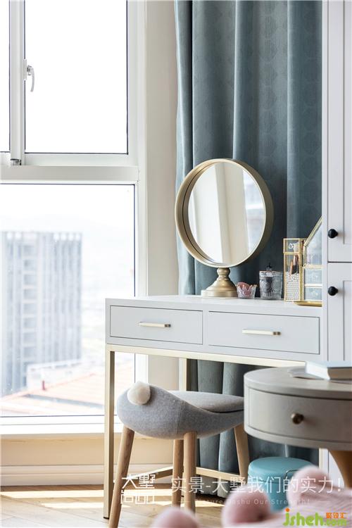 同色系化妝柜搭配黃銅質(zhì)感把手,顏值滿分引人矚目。
