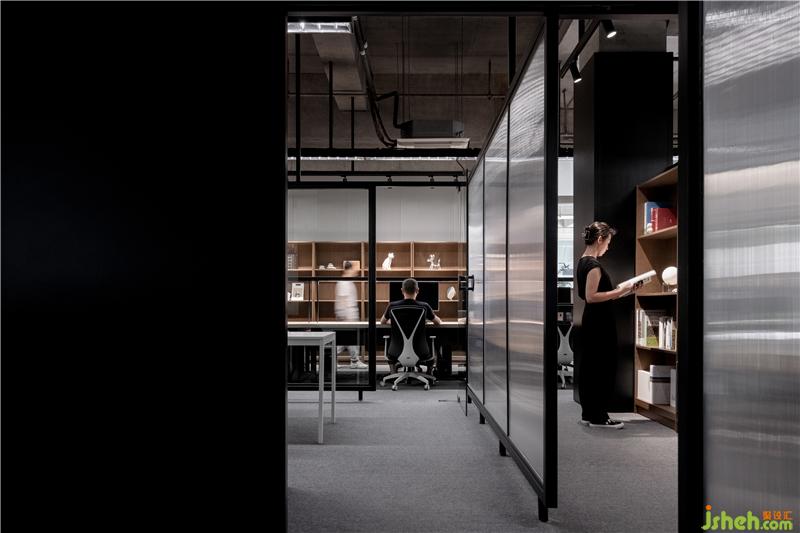 ▼ 在走廊透過(guò)會(huì)議室看到辦公區(qū)