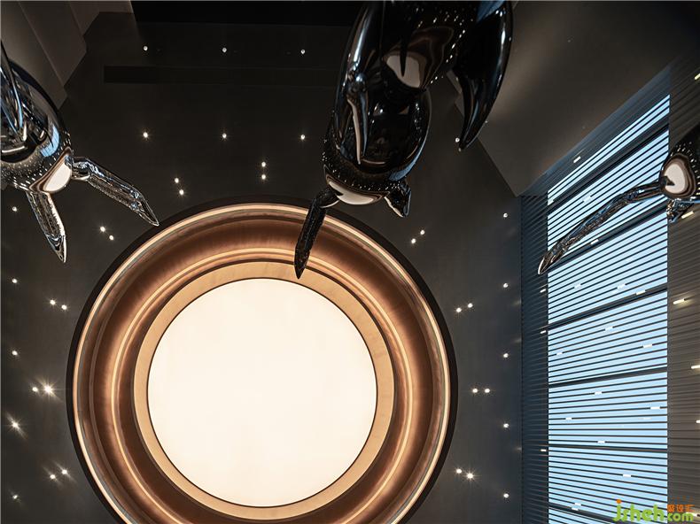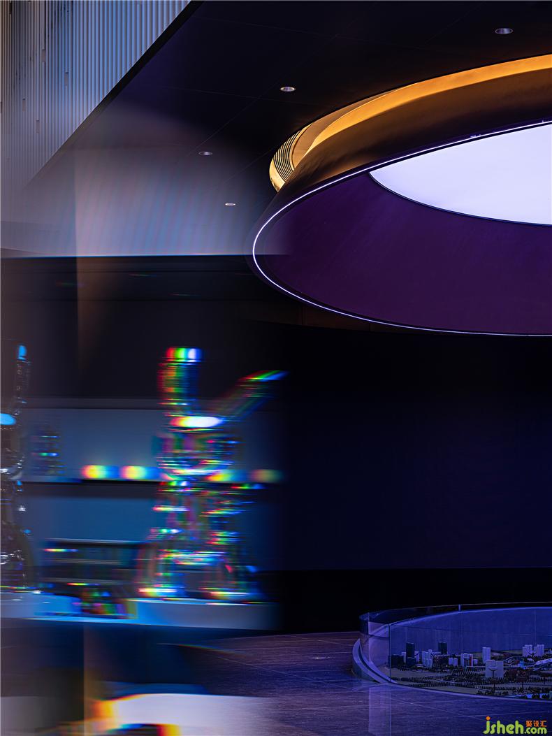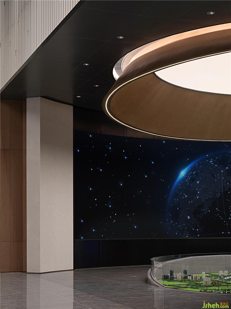 沙盤(pán)展示區(qū)取天地倒影、兩兩相望的星球?qū)υ?、演藝空間解構(gòu)天體運(yùn)行的動(dòng)態(tài)浮力球,空間頂面遠(yuǎn)近交替的圓形裝飾與光源...每一個(gè)區(qū)域球體與球體之間能量的聚環(huán)虛化邊界的同時(shí)把空間無(wú)限放大,而球體與球體之間的直線關(guān)聯(lián)又像星系一樣折射出多維的空間畫(huà)面,裝修設(shè)計(jì)行走在空間里,一面感受到無(wú)盡的生命、豐富的動(dòng)力,一面體驗(yàn)理性的秩序、圓滿的和諧,而這也是電競(jìng)精神的價(jià)值所向。