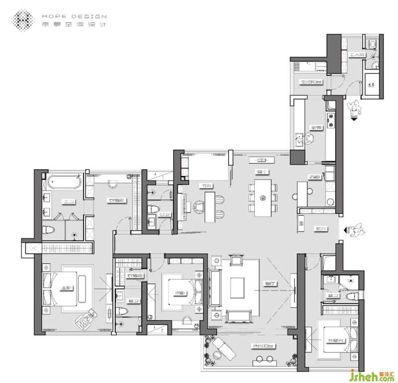真正的生活品質(zhì),是回到自我,清楚衡量自己的能力與條件,在有限的條件下追求最好的事物與生活。設(shè)計師從接地氣的生活細(xì)節(jié)中尋找靈感,以業(yè)主的實際使用需求為導(dǎo)向進(jìn)行設(shè)計。深圳裝修設(shè)計其中一間臥室改造為獨立衣帽間,靠窗處設(shè)計了獨立的工作區(qū)與梳妝區(qū),改變主臥開門方向,解決原入戶門直面臥室門的尷尬。主臥衛(wèi)生間入門設(shè)計為隱形門,與衣帽柜體門板一致,保持了衣帽間空間完整性。主臥、衣帽間、主衛(wèi)相互獨立而融于一體,簡約筆觸演繹現(xiàn)代豪宅的氣派與和諧,為偌大的空間帶來家的感覺,令人愉悅而自在。