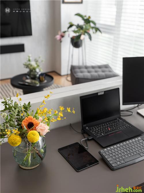 卸除實(shí)體墻后連接客廳和書(shū)房,經(jīng)過(guò)合理環(huán)境分布后,增加流動(dòng)視野之余,讓整體空間既通透又互相獨(dú)立,引進(jìn)日光也擁有足夠私隱。