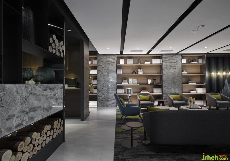 「在嶄新與過往的交替下,吸收這土地許多想象與記憶,待著停留于此的人編織新的相遇,淬煉成在地情感的支柱?!勾髲d的陳設和諧地呼應著立面,大理石在光影之下點綴了空間的層次,簡潔的天花設計與活潑的藍綠色調的融洽對話,輕松自在?,F代與沉穩(wěn)融為一體,襯托出彼此的韻味,透過線面比例關系延續(xù)大廳區(qū)域的視覺與動線,展現商務飯店的舒適與流暢感受。室內設計師