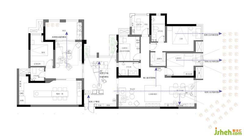兩個小主人的玩耍區(qū)不需要過多堆砌,只需要在這里留出自由發(fā)揮的空間,每個成長階段定有不同可愛景象。