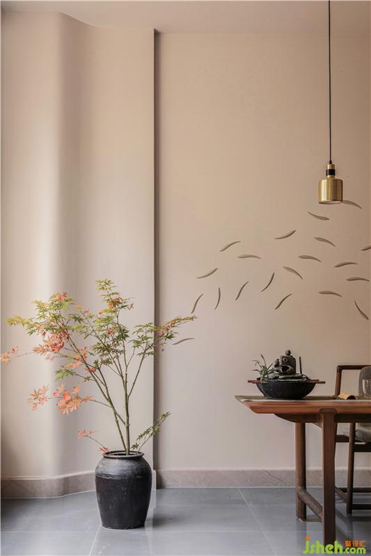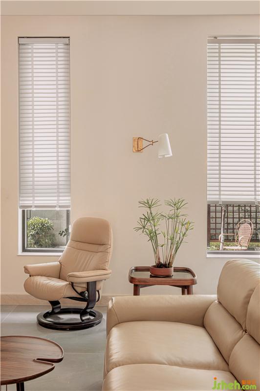 與墻面同色系呼應(yīng),內(nèi)斂不張揚(yáng)圓潤的墻角、邊沿,消磨生活的沖擊與瑣碎