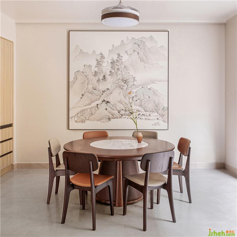 把竹葉新中式裝置點綴天井墻上由下往上,是積極生長的力量舞動旋轉,方寸間,感知主人對陽光的向往同時也追求一種積極的生活態(tài)度!