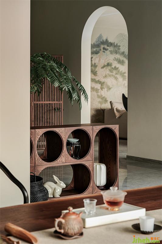 重慶別墅裝飾直線繪出兩點(diǎn)間的最短距離,弧線卻是自然界饋贈(zèng)的神秘禮物。客廳、茶室中的陽(yáng)角和柱子,皆采用了弧形設(shè)計(jì),是帶給空間靈動(dòng)的調(diào)劑,亦是敬獻(xiàn)給大自然的回禮。