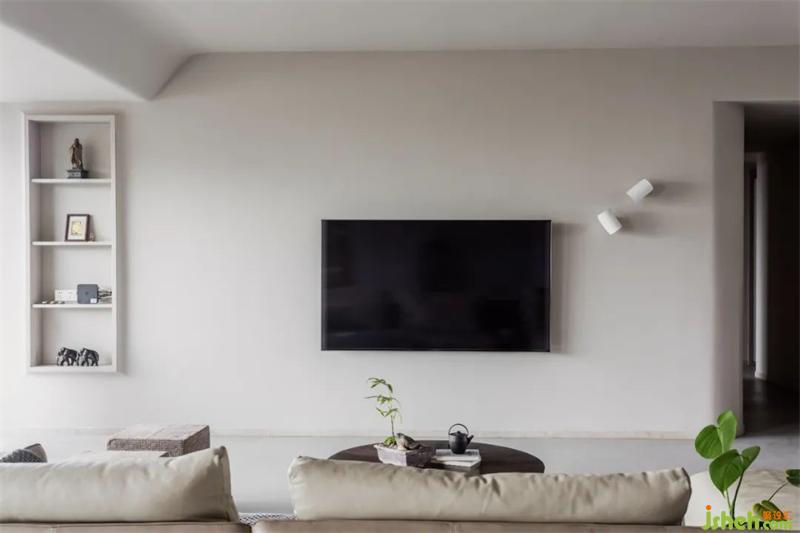 電視墻摒棄了造型結(jié)構(gòu),用最簡(jiǎn)單的一面底色來襯托,讓視覺看上去干凈整潔
