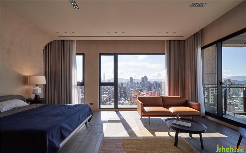 經(jīng)由不同角度,客廳弧形天花反而向上延伸,呼應(yīng)遠(yuǎn)方的山色悠然與寂靜,亦增添了空間的寬敞與靜定。主臥床頭墻,延續(xù)弧形元素延續(xù)至天花,使其忽略空間壓梁?jiǎn)栴},并提高廣州裝修設(shè)計(jì)空間高度,弧的造型也形成的靜定的心靈感受。