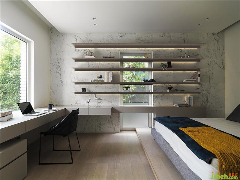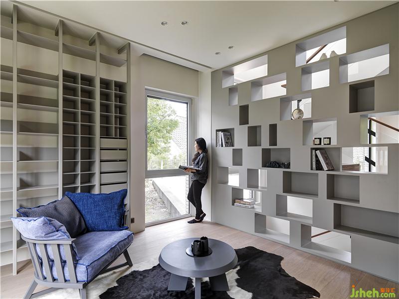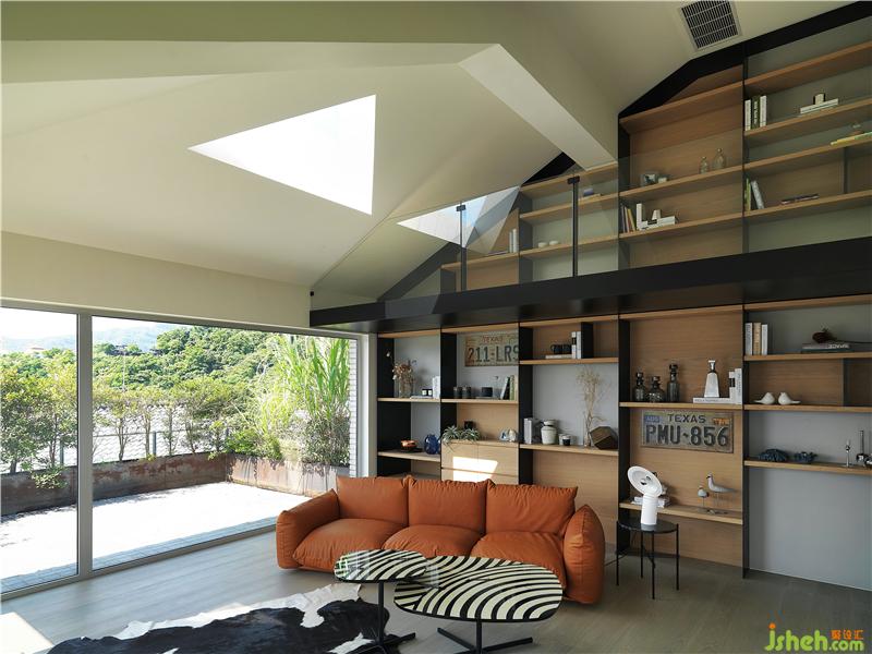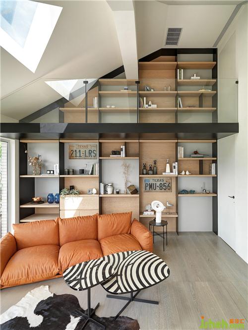 挑高的閣樓休憩區(qū)擁有浪漫三角天窗,北京裝修設(shè)計(jì)彷彿置身于白色的戶外帳篷內(nèi),書(shū)墻由鐵件、木作、玻璃圍欄構(gòu)筑,儼然成說(shuō)故事或冥想、放空的好地方,讓大自然芬多精與書(shū)香氣息一同共襄盛舉。