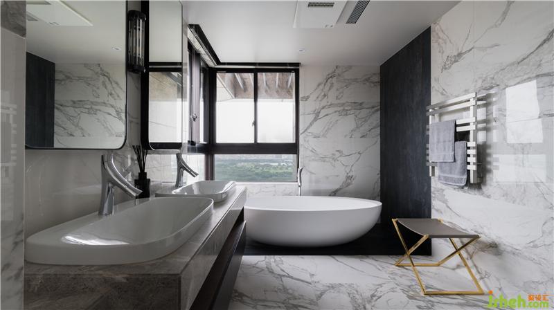 全案游移在俐落現(xiàn)代基底與新東方古典的悠遠之間,首先電視主墻簡斂卻不失活潑律動的線性架構(gòu),交織不同材質(zhì)的錯層堆疊與溫潤,懸垂于餐桌上方的銅金色燈飾,四向開揚的圓形扇片以透光石材制作,激似水墨畫的肌理,流露古詩畫特有的文人浪漫。此外,以屋主英文姓氏發(fā)想的?圓弧角語匯,也成為賞翫全案的關(guān)鍵線索,包括公領(lǐng)域分區(qū)天花板造型,兼顧精致間接照明和隱匿梁下差的積極目的,另外還有懸置于書房入口兩側(cè)的金屬層架、浴室掛鏡、面盆、鑲嵌于天花板的特殊霓虹矽膠軟條燈帶等等,都能深刻體現(xiàn)圓弧語匯所代言的專屬性與尊榮感,而通往私領(lǐng)域的廊道也特地擴張至120cm寬,側(cè)向展示柜強化視覺深邃,幅寬則確保長輩行進間的舒適尺度。裝修公司