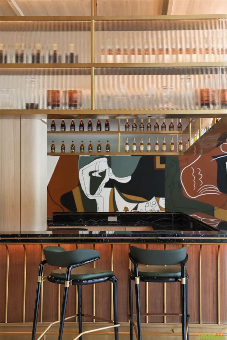 空間中的元素產(chǎn)生相互關(guān)聯(lián)與對話,形成空間串聯(lián)之線索,一整片的藝術(shù)墻體,裝修設(shè)計猶如上演著延續(xù)的話劇,豐富了一隅小坐。