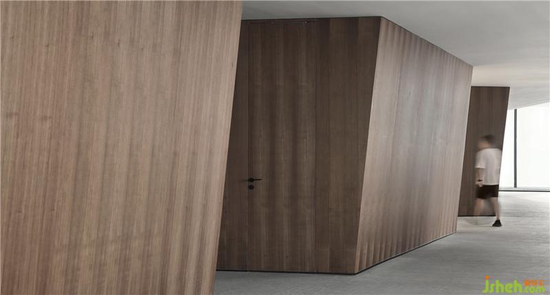 木飾面墻體產(chǎn)生的隔斷感溫和有力、收放自如,自然方正的形態(tài)遵循理性有序的設(shè)計法則,從而讓整個大堂有了延長性、藝術(shù)性,工整有序,流暢而舒適。裝修設(shè)計