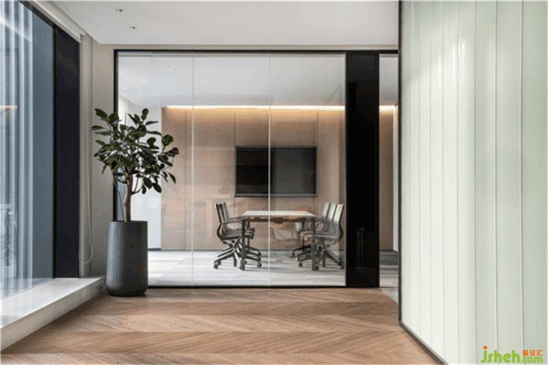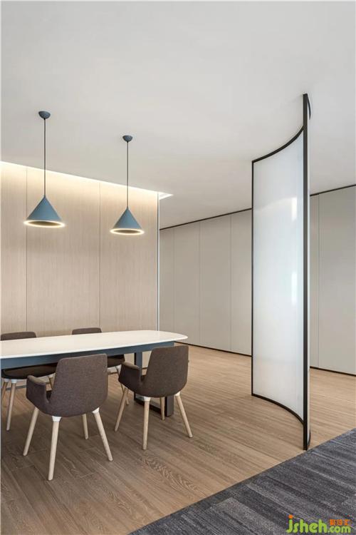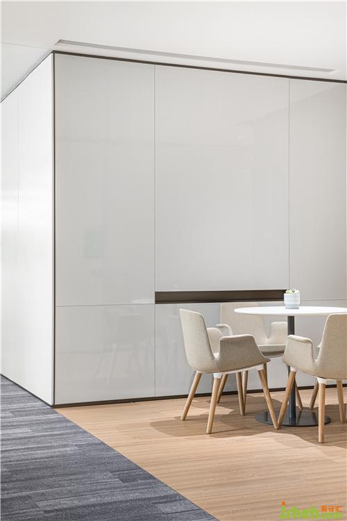 出于對這里的功能考慮,我們將會議室設置了三種燈光模式,分別對應滿足了投影、開會、書寫的不同需求,辦公模式與會議模式可隨時切換。