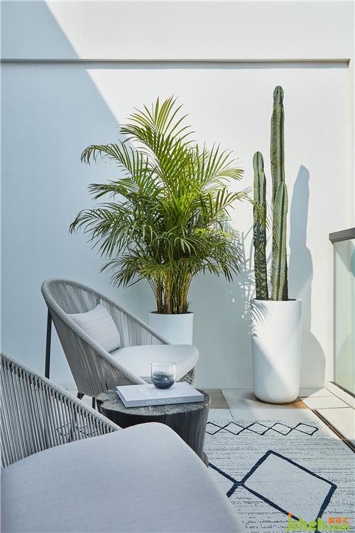 大面積的落地窗弱化了室內(nèi)外的界限,戶外碧海與藍(lán)天融于一室之內(nèi)。倚躺在沙發(fā)上,浮現(xiàn)于腦海的是記憶中過去與未來的交織之景。宛若置身疏密錯(cuò)落的花葉間,伴隨著植與土的芬芳?xì)庀ⅲ还杉兇舛r活的自然生命力盛放于光影之中。