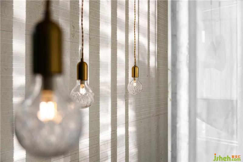 設(shè)計(jì)師巧妙運(yùn)用了紙藝的透光性,穿入3000多根光纖裝裱出層疊形態(tài),微暖光芒與獨(dú)特造型增添了整個(gè)空間的藝術(shù)氣質(zhì)。