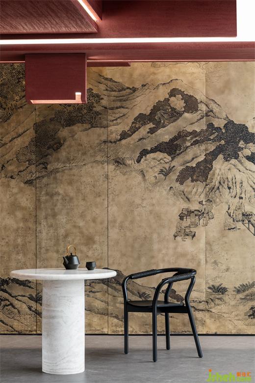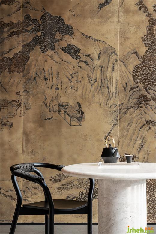 畫作從構圖、空間角度傳承了古人的一番浪漫情懷,為空間帶來萬物可親、祥和生長的力量。