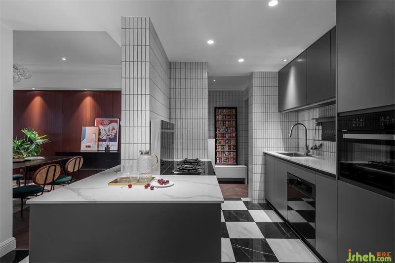 在動線上,將廚房與餐廳洗手臺作為兩個“環(huán)島”既滿足了空間的使用功能,又增加了空間的層次感和交流性,讓做飯變得更加有趣,而不是獨自面壁對著空氣。