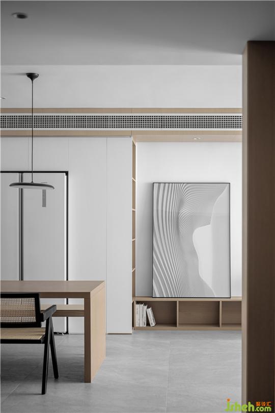 對于簡約,我們理解為選材上的克制,用色的純粹,不同的功能細(xì)節(jié)來支撐空間的平衡。石材與木質(zhì)的搭配在冷暖調(diào)中也顯得剛?cè)嵯酀?jì)。一個大的廚房空間,加一個大的餐廳,三五好友或親人可以經(jīng)常相約而憩,聊天、聚會、看電影等,一起享受愜意時光。