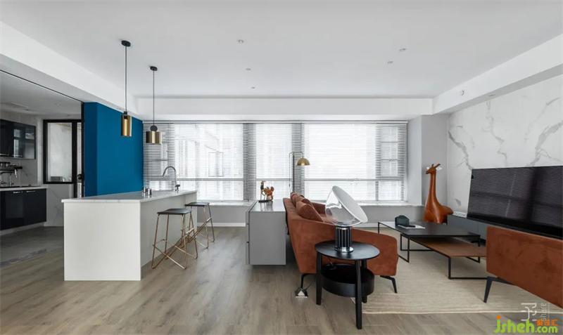 連接在一起的客廳和西廚,更方便女主人在島臺(tái)區(qū)操作時(shí)追劇、學(xué)習(xí)美食等。下班后,爸爸帶著女兒在客廳看電視,愛人在西廚準(zhǔn)備著飯后水果或是甜點(diǎn),一家人其樂融融。