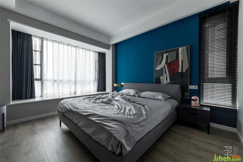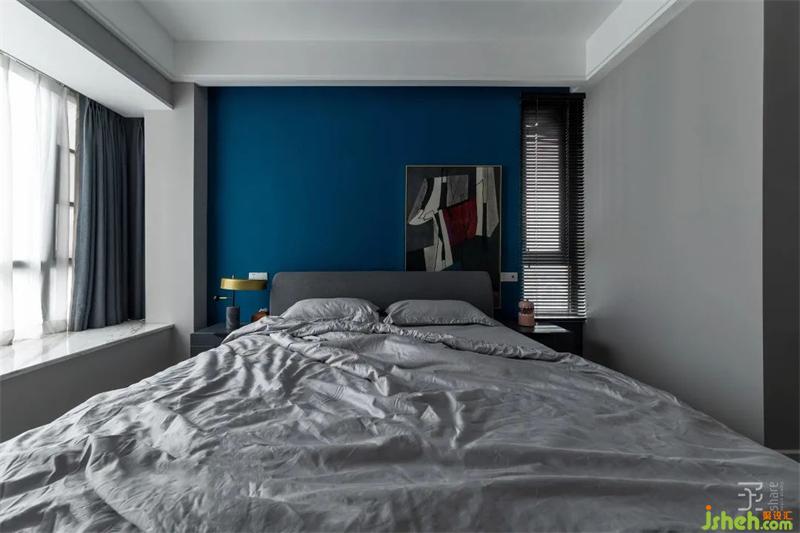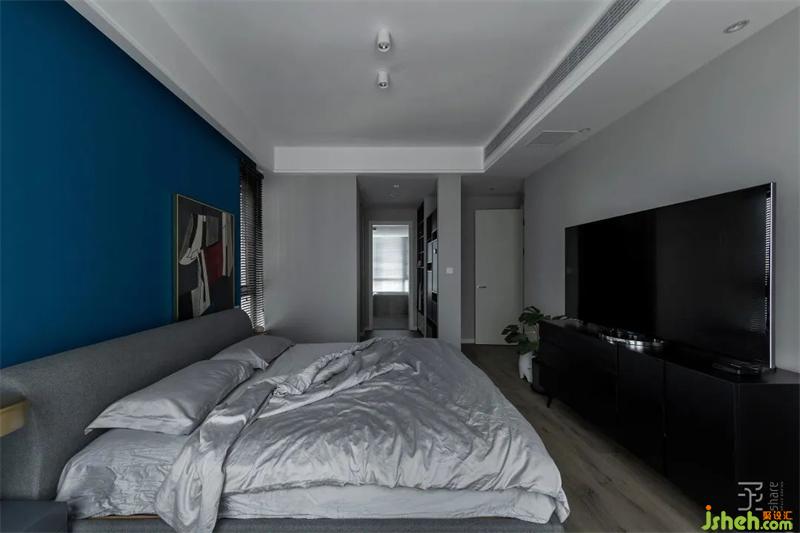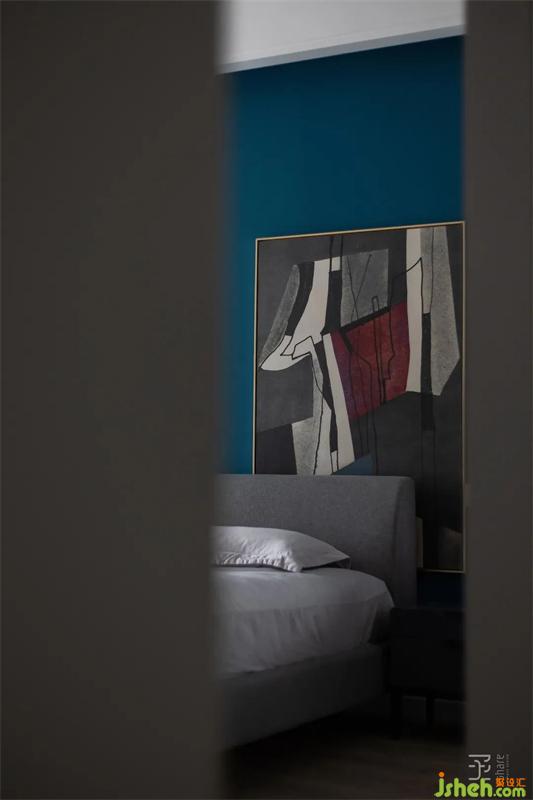 整體布局開闊簡(jiǎn)練,摒棄了繁雜的裝飾,一切以質(zhì)感、清爽為原則。從玄關(guān)開始以深藍(lán)色墻面延伸到臥室,灰與深藍(lán)色的融合,打造柔和的休息空間。