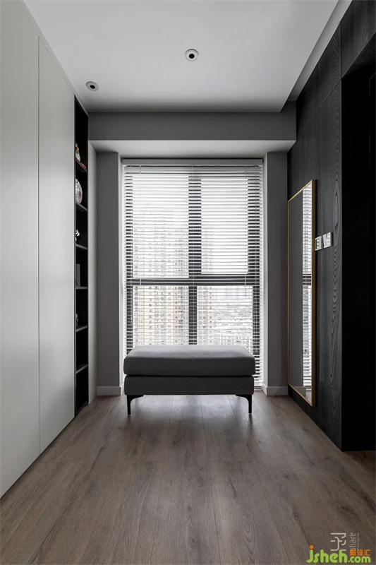 原本從主臥進(jìn)衛(wèi)生間的空間通道尺寸很小,而且衣帽間也很小,不方便使用。通過(guò)對(duì)墻體的拆除,將衣帽間的空間打開,在進(jìn)門處設(shè)置玄關(guān)柜,把衣帽間與衛(wèi)生間結(jié)合在一起,讓空間動(dòng)線更為方便,同時(shí)空間也更加開闊。
