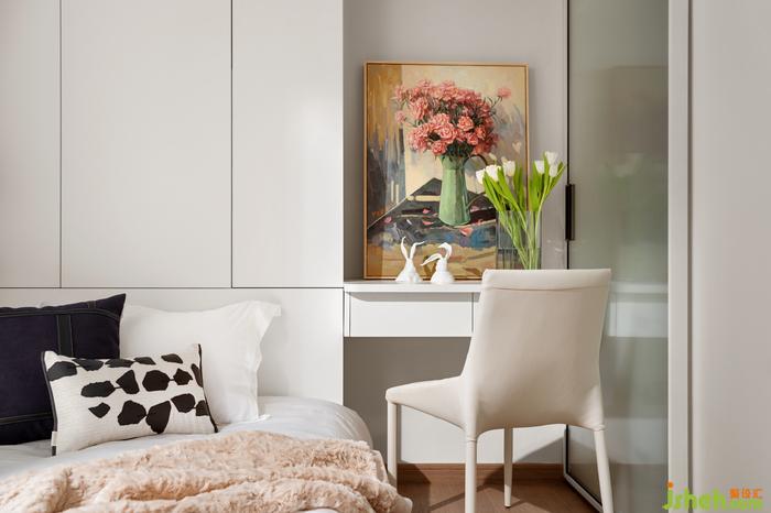 The basic color of low saturation creates an elegant living space, while the elegant champagne color creates a sense of layering, neutralizing the cool breath brought by the pure white space. Different textures collide with each other, presenting a warm and peaceful meaning.