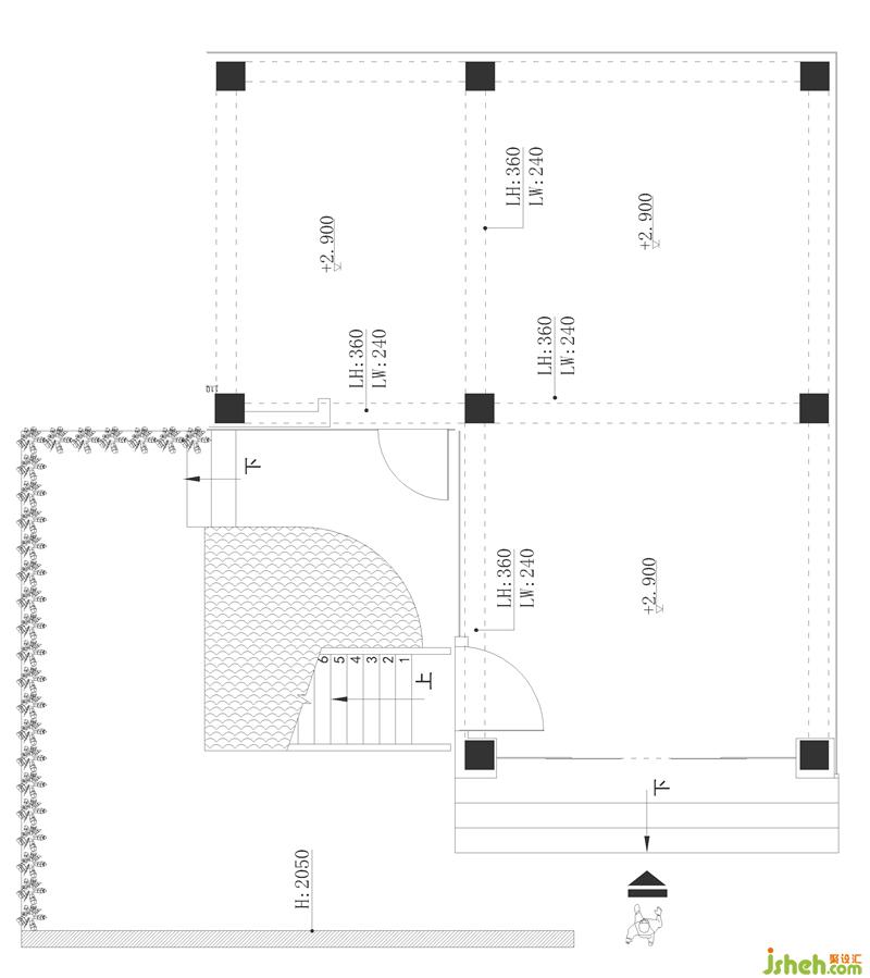 ▼ 一層原始平面圖,空間“視覺焦點(diǎn)”超比例樓梯原本是位于戶外的雞肋設(shè)計(jì)